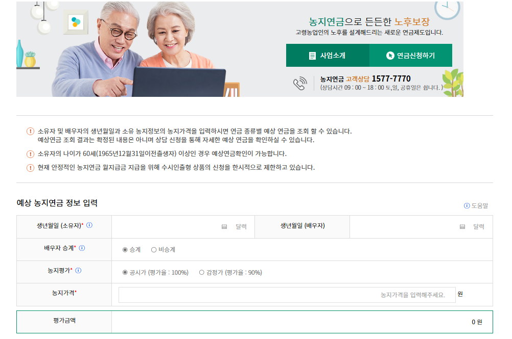 농지은행 통합포털의 ‘농지연금 계산기’ 메뉴에서 나이·감정가·지급방식을 입력하면 예상값을 바로 확인할 수 있습니다.