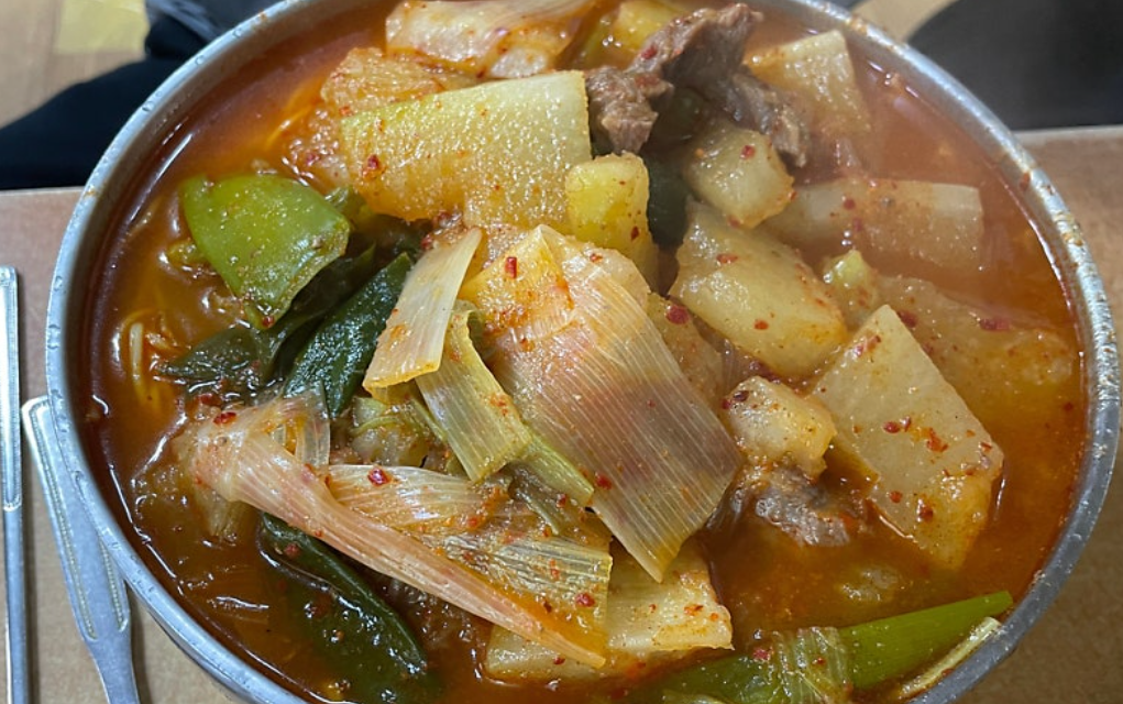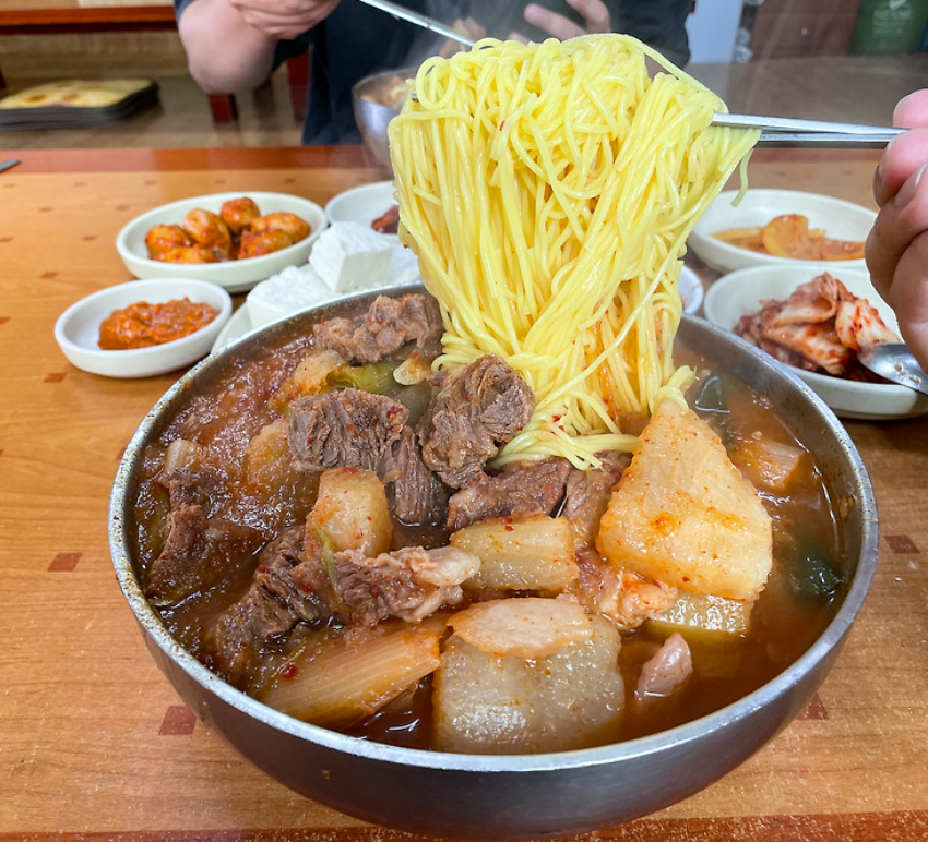 국물 맛이 깊고 진해요. 자극적이지 않은데도 묘하게 중독성 있는 맛. 알고 보니 소고기 양지를 푹 고아서 낸 육수에 고춧가루로 살짝 매콤함을 더했다고 하네요.